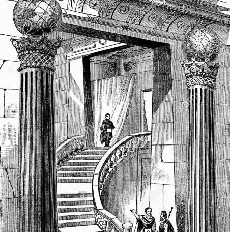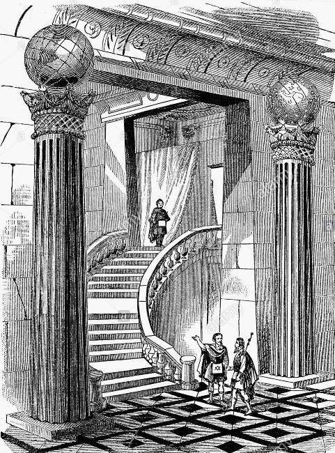 The columns belong to the portico of King Solomon’s Temple, as seen on the First Tracing Board.
